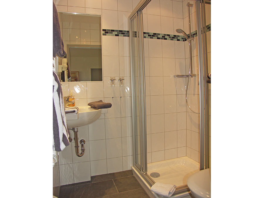 Ein neues Badezimmer mit Dusche und WC gehört selbstverständlich ebenfalls zu der gemütlichen Ferienwohnung für 2 Personen.