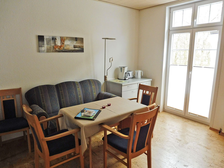 Sie haben die Möglichkeit das daneben liegende Zimmer 25 a, ca. 17 qm, für eine weitere Person mit zu buchen. Klein aber fein und praktisch mit Duschbad.