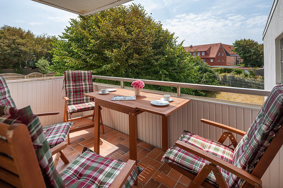 Die Ferienwohnung verfügt über einen Flur mit Garderobe, ein Schlafzimmer mit Doppelbett, 160 x 200 cm, ein Wohnraum mit Küchenzeile, Esszimmertisch, eine bequem Sitzgruppe mit einem Schlafsofa und 2 Sessel, 140 x 200 cm, und Couchtisch. Für die Kurzweil steht eine kleine HIFI-Anlage sowie Kabel-TV zur Verfügung. Zur Ausstattung des hellen Duschbads gehört auch ein Fön. Entspannen, klöönen, frühstücken könne Sie auf dem kleinen Balkon.