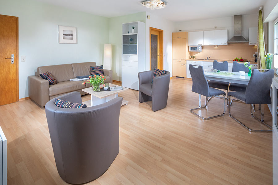 Die Ferienwohnung ist mit hellem Laminat ausgelegt